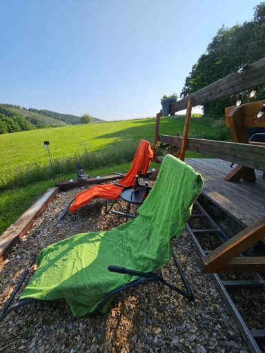 Genießen Sie eine herrliche Aussicht auf den umliegenden Wald und die grünen Wiesen direkt von Ihrer Unterkunft aus.